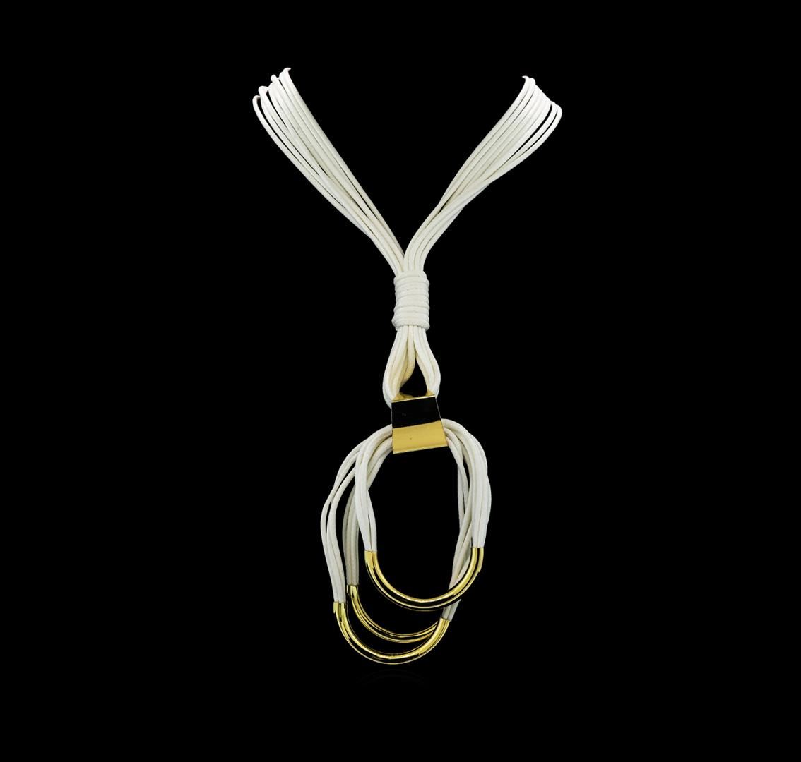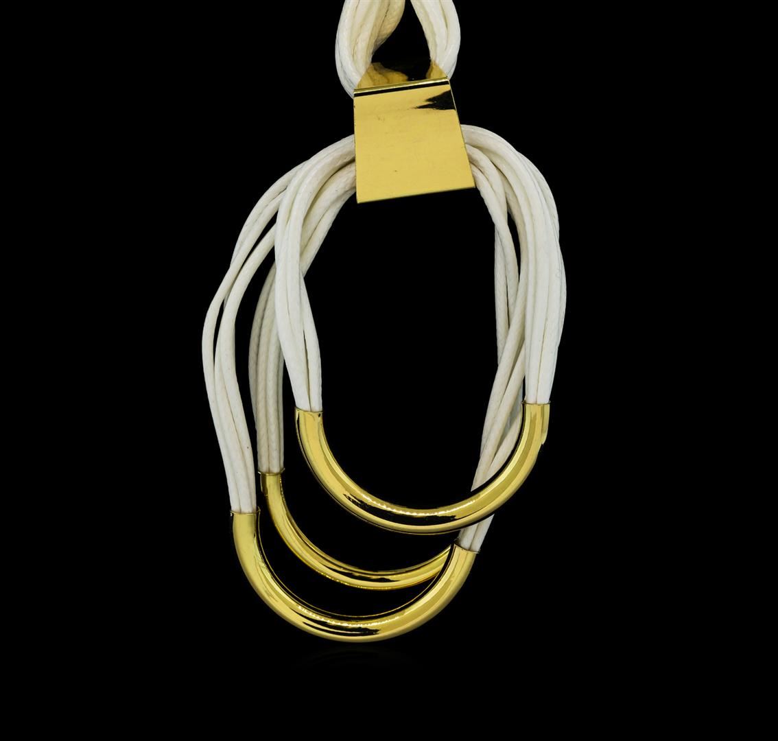 High end designer jewelry. Multi Strand Leather Necklace - Gold Plated. Gold Plated Metal/3" Ext Clasp. White/gold. 32/3.5inches.