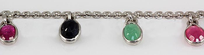 Multi-color 8.60ctw Bezel Dangles Silver Necklace 7.73g **|**|** 16in. Long Multi-color Gemstone in Bezel Dangles Design Silver Neckalce; 15pcs 6x4mm ; MSRP: $900