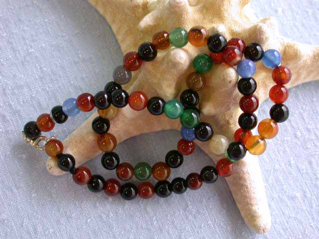 Agate Necklace around 6 mm w/ Silver Clasp and approximately 15 inches long.