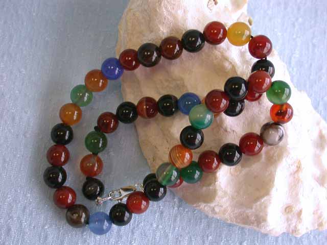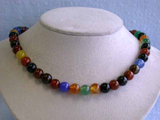 Agate Necklace 8 mm beads w/ Silver Clasp and approximately 15.5 inches long.