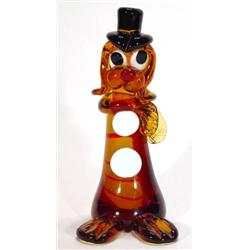 Multi-coloured Murano glass dog with top hat, 25cm high