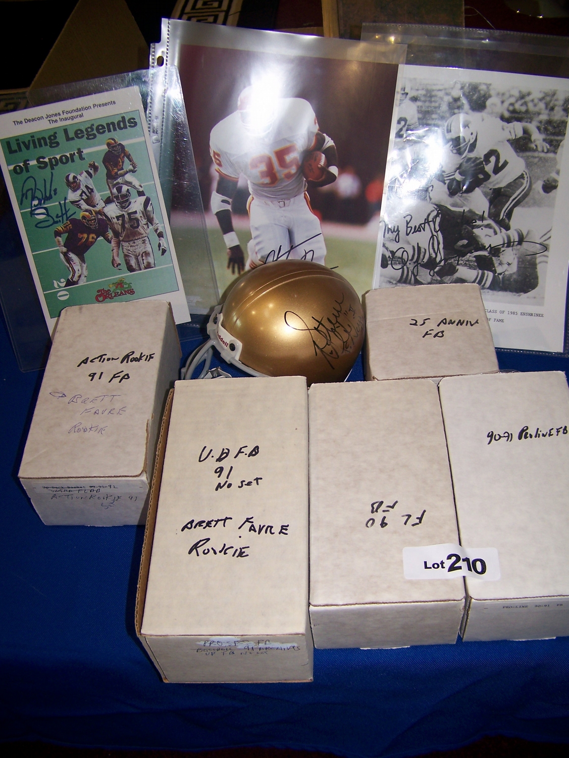 Multi-piece NFL Lot including (3) signed pictures, signed mini-helmet several sets of Football cards