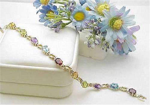 Multi-stone bracelet with garnet, topaz, peridot, citrine and amethyst stones in 14kt yellow gold. 11.1gr 7 1/2"