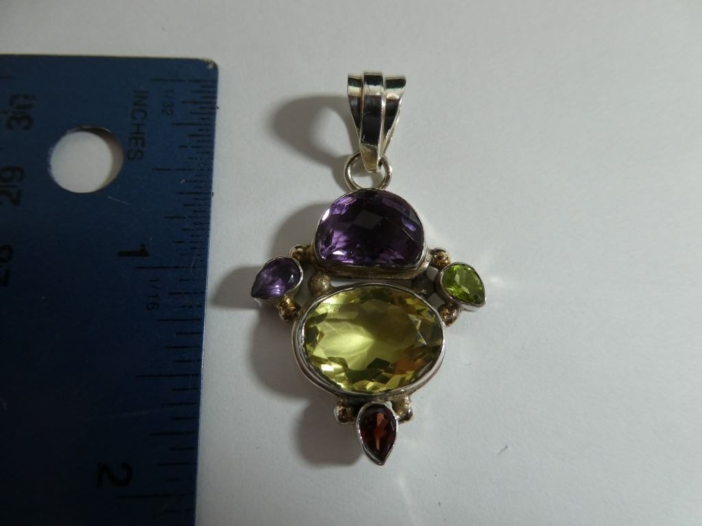 Amethyst, lemon quartz, smoky topaz, peridot and garnet