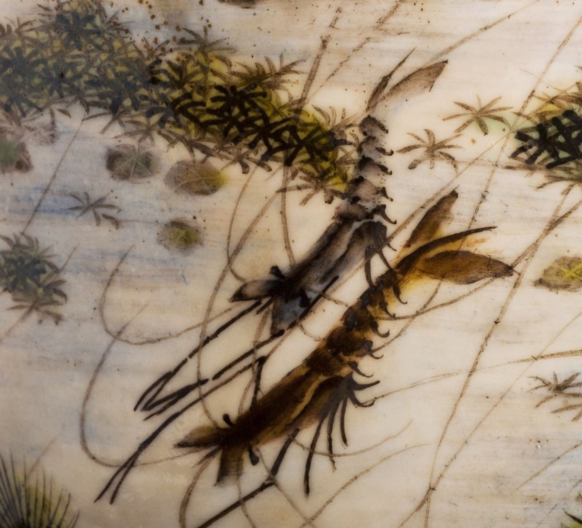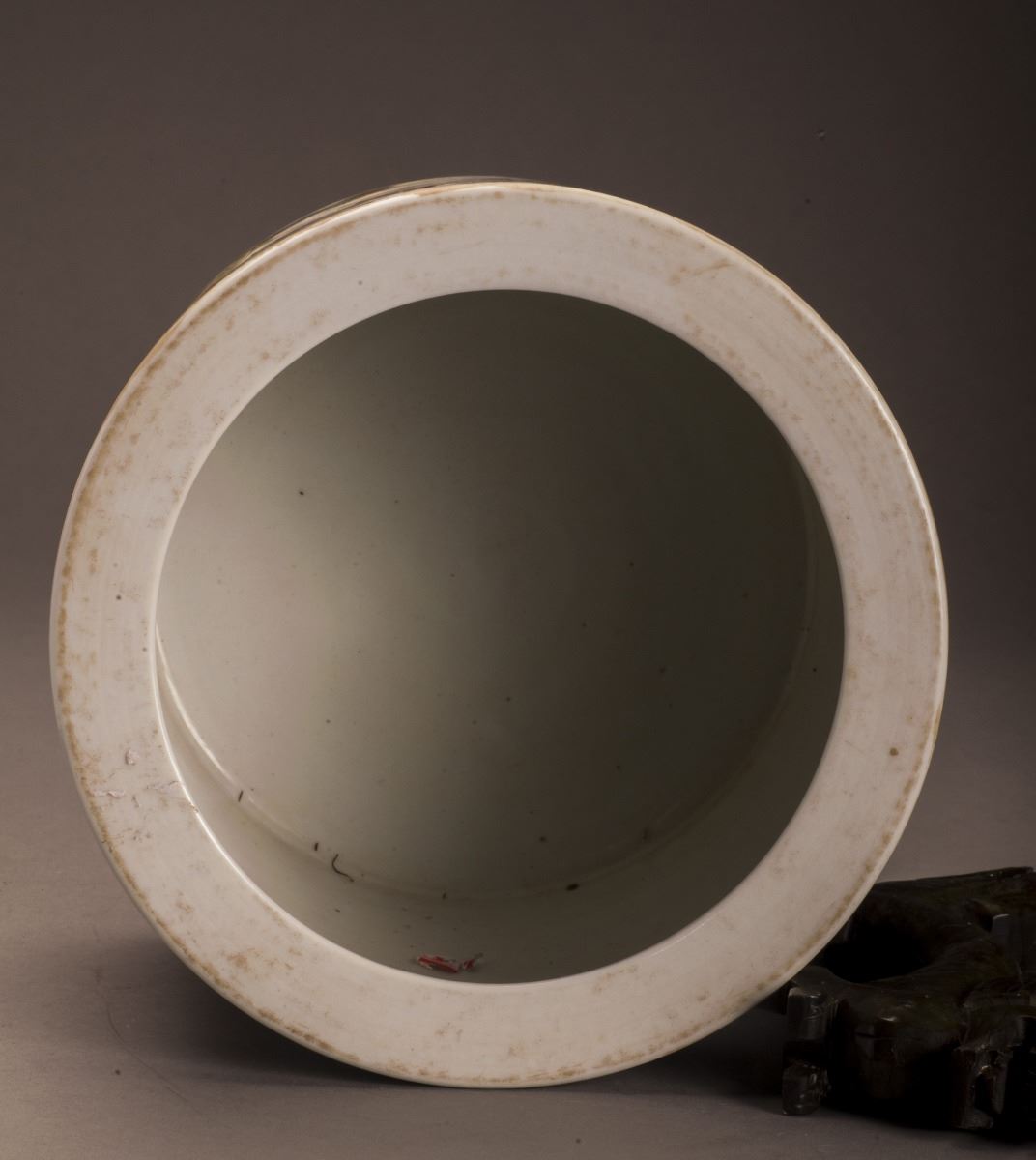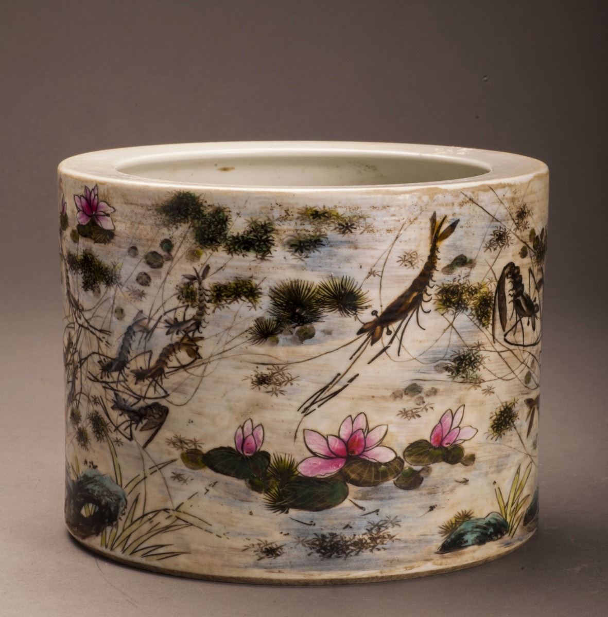 A Fine And Rare Porcelain Brush Pot In Good Condition, Painted With Vivid Shrimps At The Main Surface, Designed In Extremely Details, All Set Within The Rocks And Plants And Rivers. Decorated With Vivid Pink BloomingLotus.