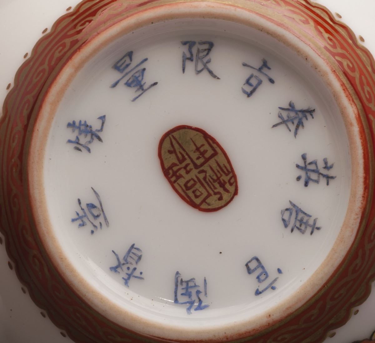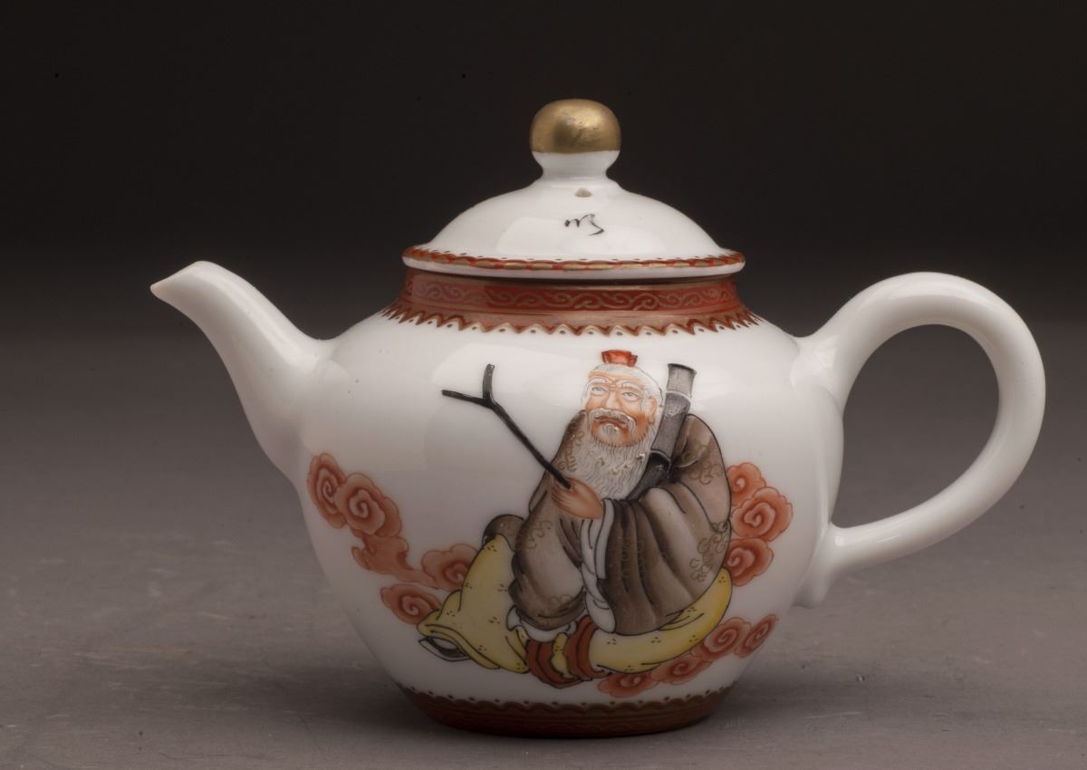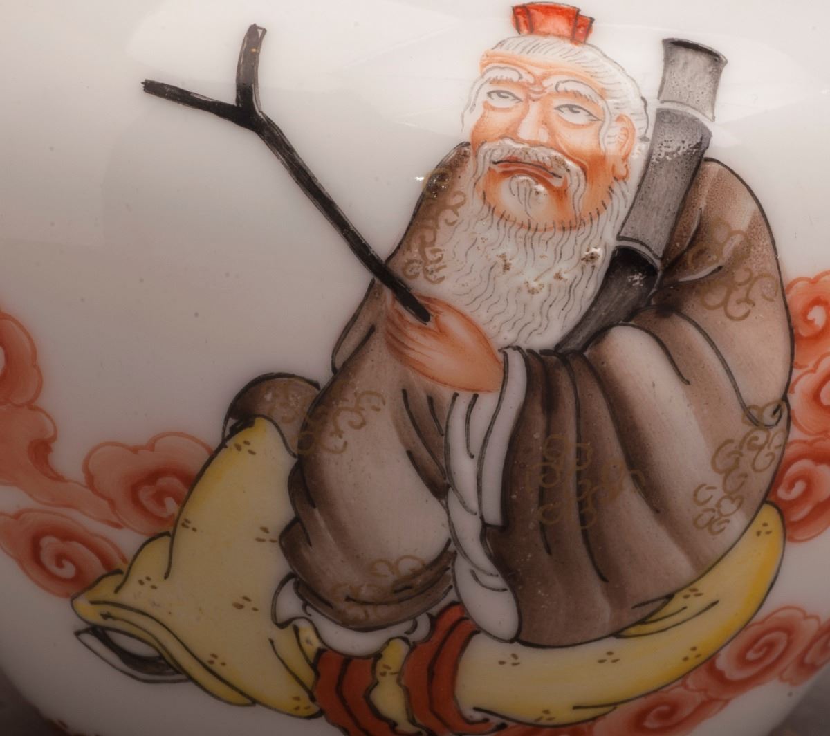 Depicted With Vivid Figure Of An Old Gentleman At Cavetto, Siting On The Red Glazed Red Clouds, Holding A Stick On Hand. Face Vividly Expressed. With Fine Calligraphy On The Other Side Of The Body.