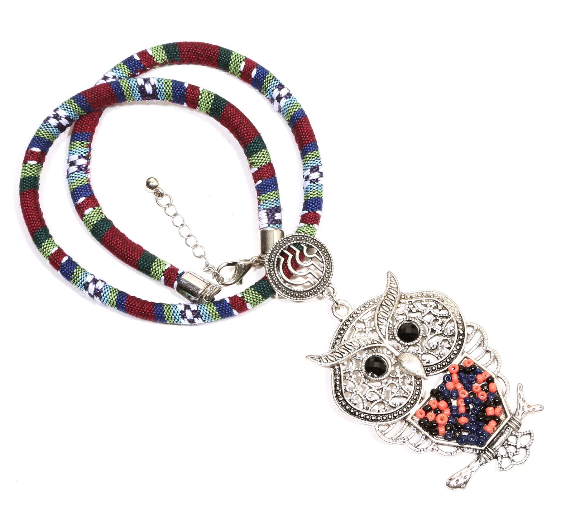 Multi Colored Gemstone Silver Plated Owl Design Necklace Jewelry 18" Inches  With Adjustable Links , Jewelry Type : Necklace , Gemstone : Multi Colored , Necklace Length : 18 Inches (With adjustable Links) , Necklace Weight : 26.20 Grams.