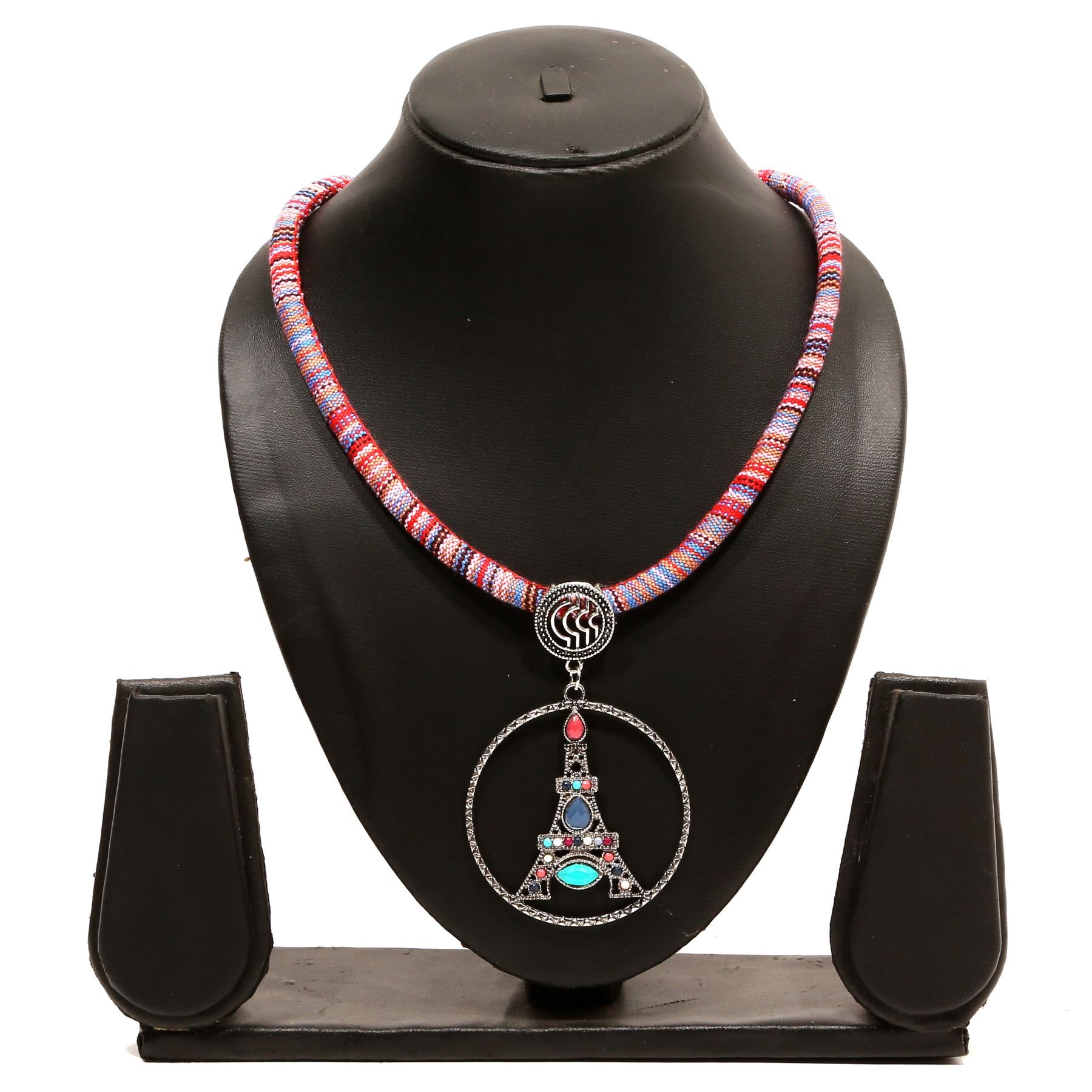 Multi Colored Gemstone Silver Plated Eiffel Tower Design Necklace Jewelry 18" Inches With Adjustable Links , Jewelry Type : Necklace , Gemstone : Multi Colored , Necklace Length : 18 Inches (With adjustable Links) , Necklace Weight : 19.10 Grams.