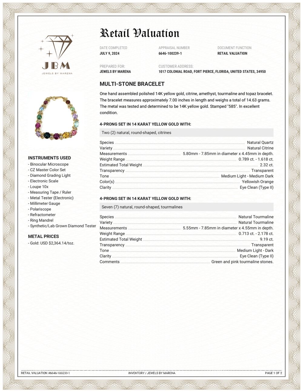 DESCRIPTION DETAIL: A gorgeous bracelet set with various natural Gemstones in multiple shapes crafted in 14K Yellow Gold.& nbsp;