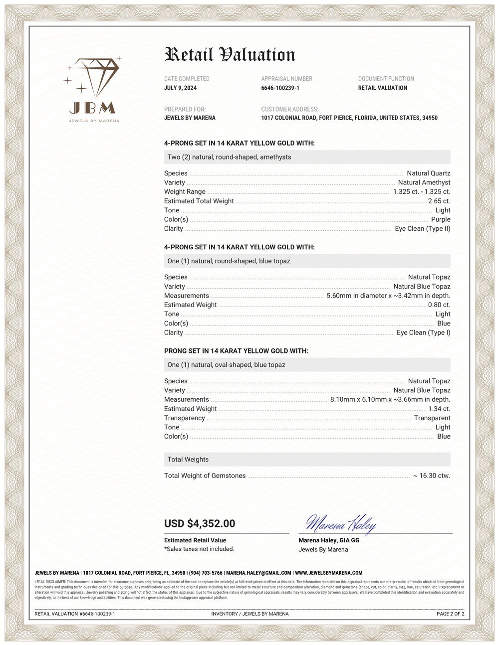 TOTAL GEMSTONE WEIGHT: Approximately 16.30 Carats Total Weight