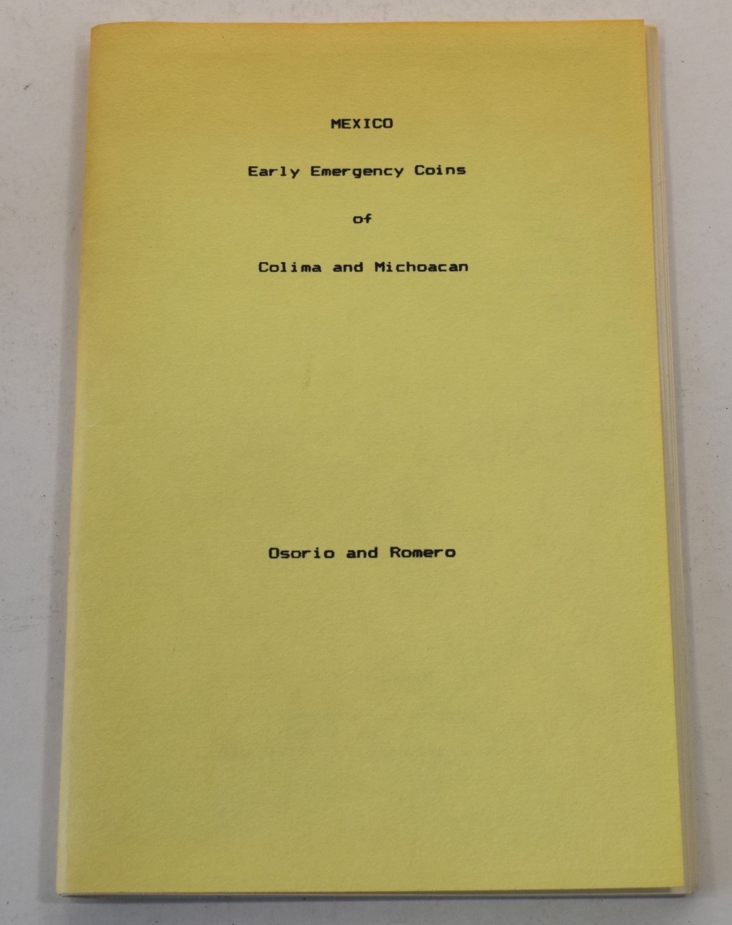 (4) Mexico: Early Emergency Coins of Colima and Michoacan by Osario and Romero; Jerry F. Schimmel; 41p, 12mo; Softcover. Reprinted from Boletin de la Sociedad Numismatica de Mexico