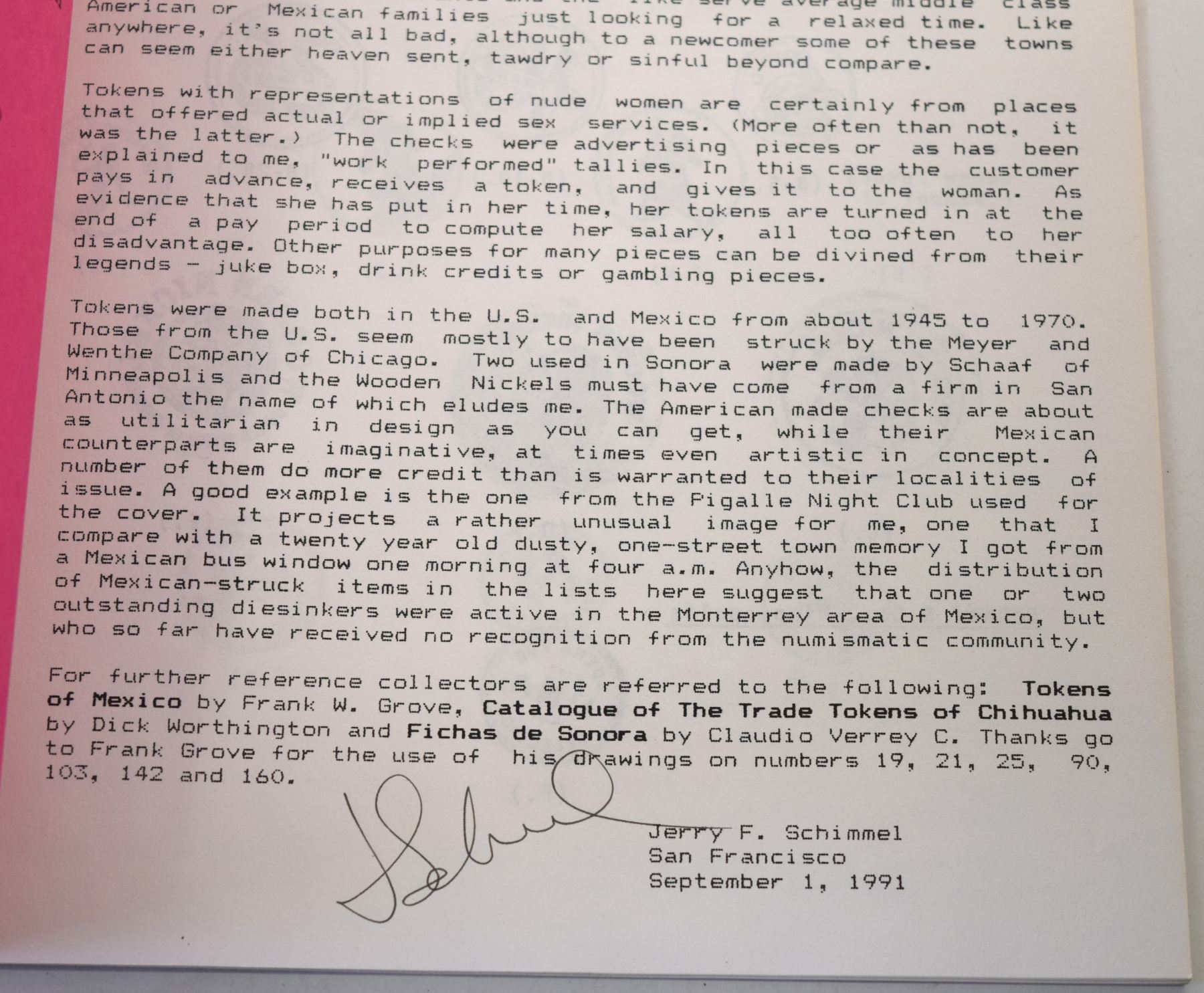 (5) Mexico: Modern Tokens of the Border Towns and States by Schimmel, Jerry F.; Jerry F. Schimmel; 1991; 38p; 4to; Softcover; signed by the author.