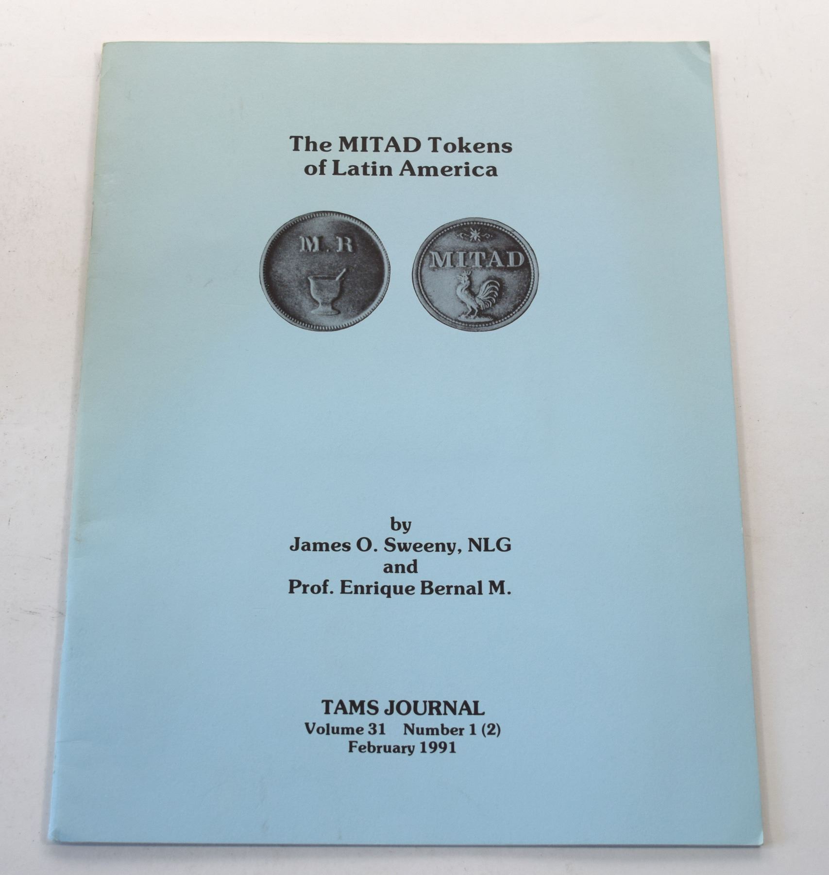 (7) The MITAD Tokens of Latin America by Sweeny, James O. & Enrique Bernal M.; Token and Medal Society, Inc.; 1991; 31p; 4to; Softcover; TAMS Vol. 31 No. 1.; ex libris of Frank Katen; Ex Katen sale 77 lot 1011
