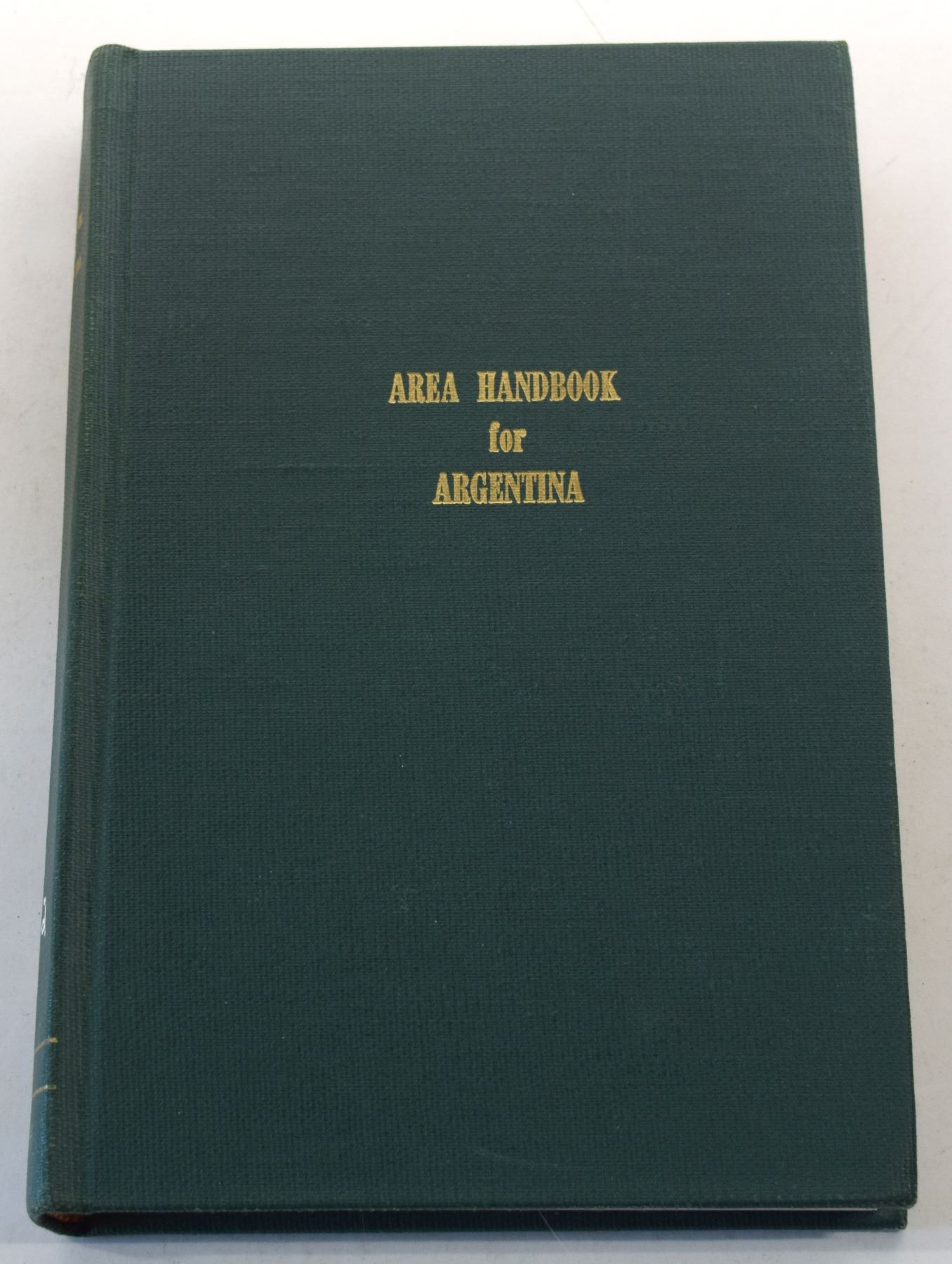 (1) Area Handbook for Argentina by Weil, Thomas E. et al.; U.S. Government Printing Office; 1974; 404p; 12mo; Hardcover; ex library; Green buckram gilt; This book was put out by the Foreign Area Studies (FAS) of the American University as a compendium of facts about the social, economic, political, and military institutions and practices of Argentina.