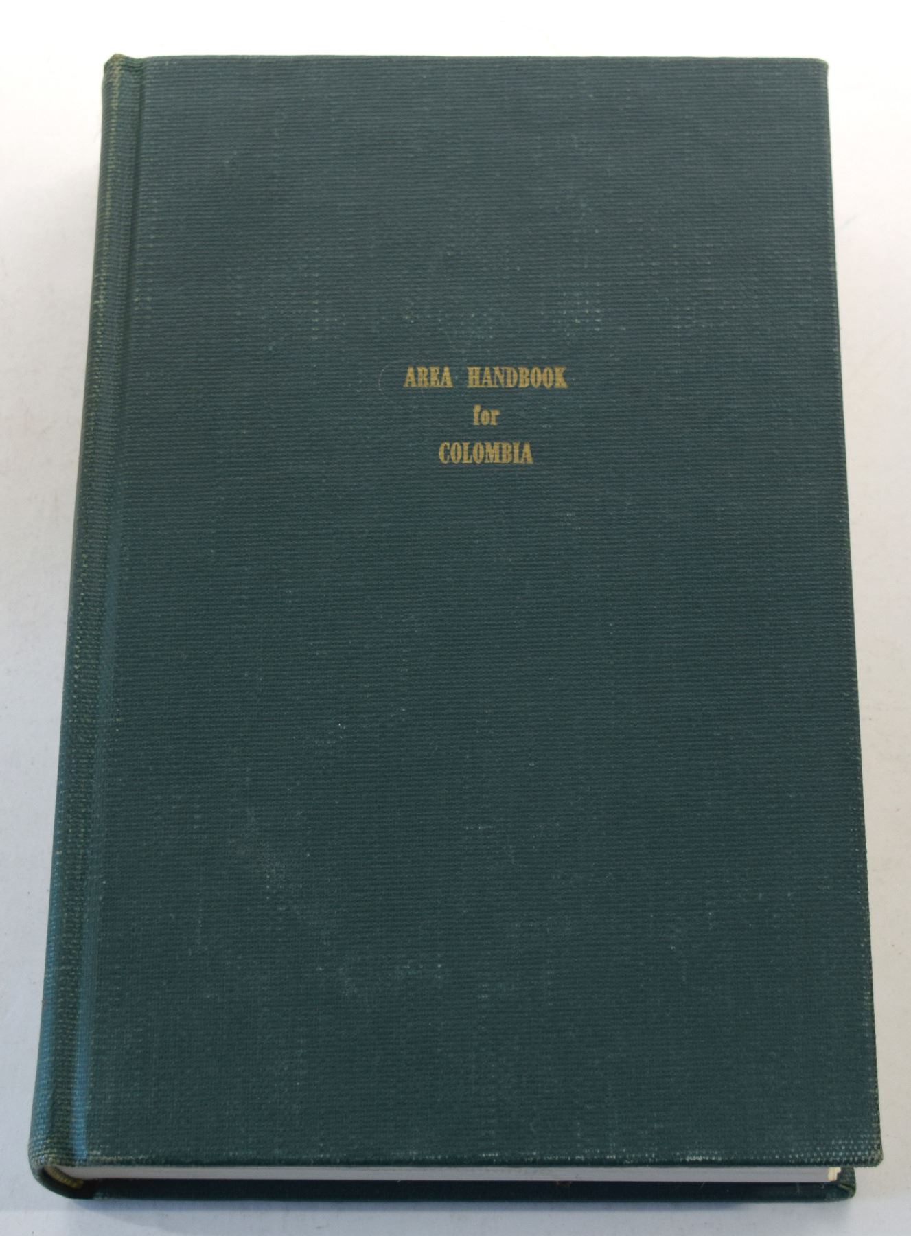 (4) Area Handbook for Colombia by Weil, Thomas E. et al.; U.S. Government Printing Office; 1970; 595p; 12mo; Hardcover; ex library; Green buckram gilt; This book was put out by the Foreign Area Studies (FAS) of the American University as a compendium of facts about the social, economic, political, and military institutions and practices of Colombia.
