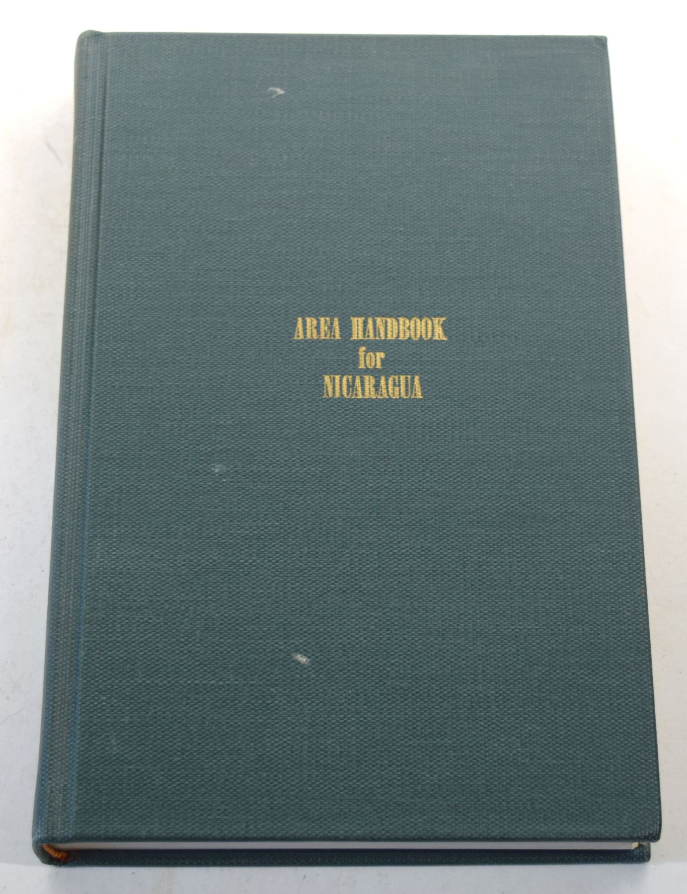 (8) Area Handbook for Nicaragua by Ryan, John Morris et al.; U.S. Government Printing Office; 1970; 393p; 12mo; Hardcover; Green buckram gilt; This book was put out by the Foreign Area Studies (FAS) of the American University as a compendium of facts about the social, economic, political, and military institutions and practices of Nicaragua.