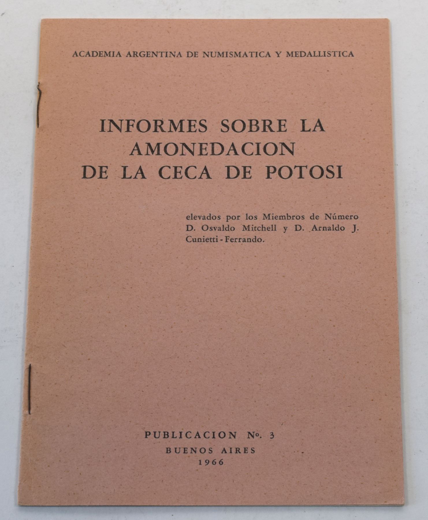 (2) Informes Sobre La Amonedacion de la Ceca de Potosi by Mitchell, Osvaldo & Arnaldo J. Cunietti-Ferrando; La Academia Argentina de Numismatica y Medallista; 1966; 15p; Softcover; illus.; ex libris Frank Katen; ex libris Freeman Craig, Jr.; Publicacion No. 3.