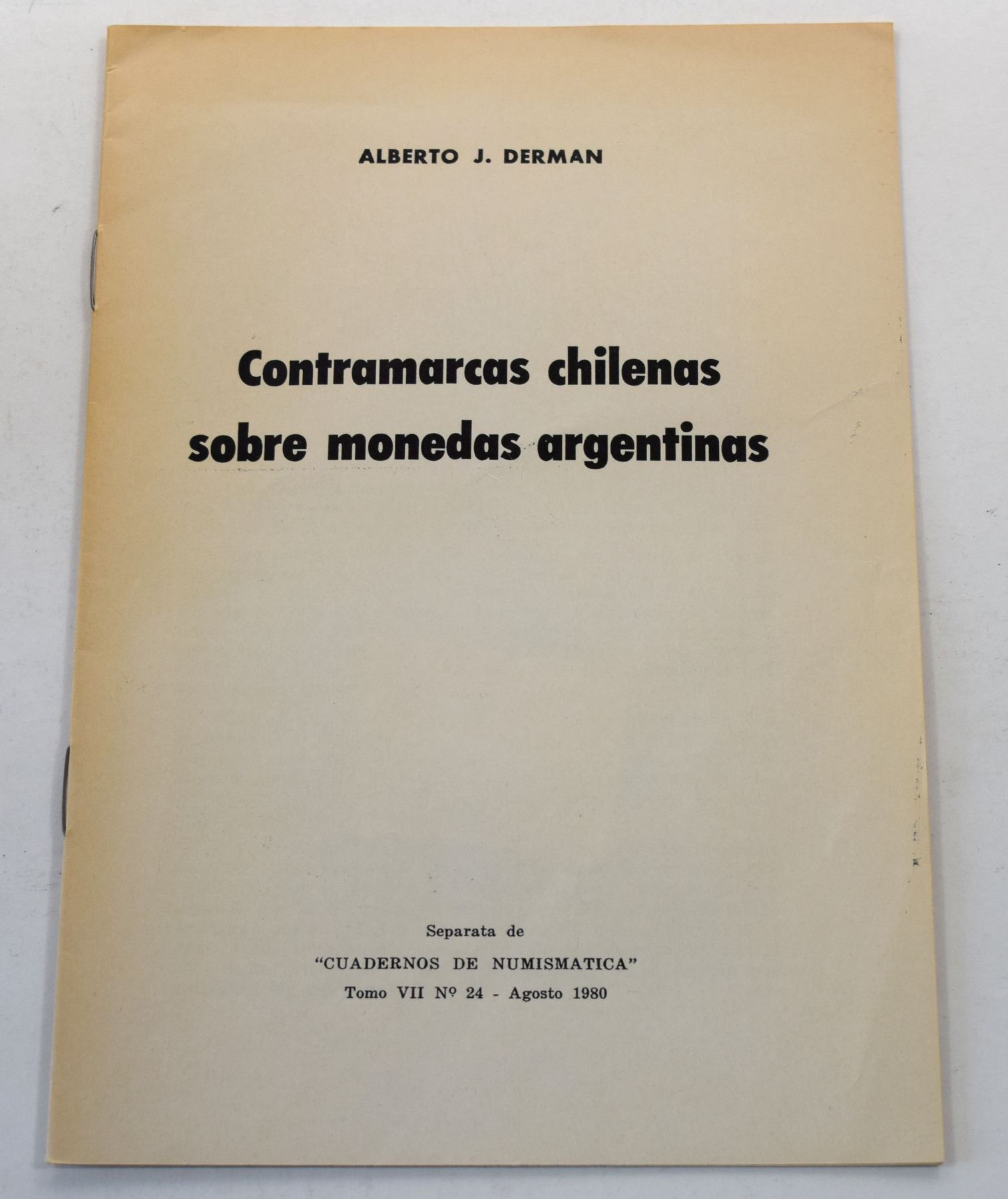 (10) Contramarcas Chilenas sobre Monedas Argentinas by Derman, Alberto J.; Cuadernos de Numismatica; 1980; 13p; 12mo; Softcover; illus.; Inscribed by the author; separata de Cuadernos de Numismatica Tomo VII No. 24, Augusto 1980.