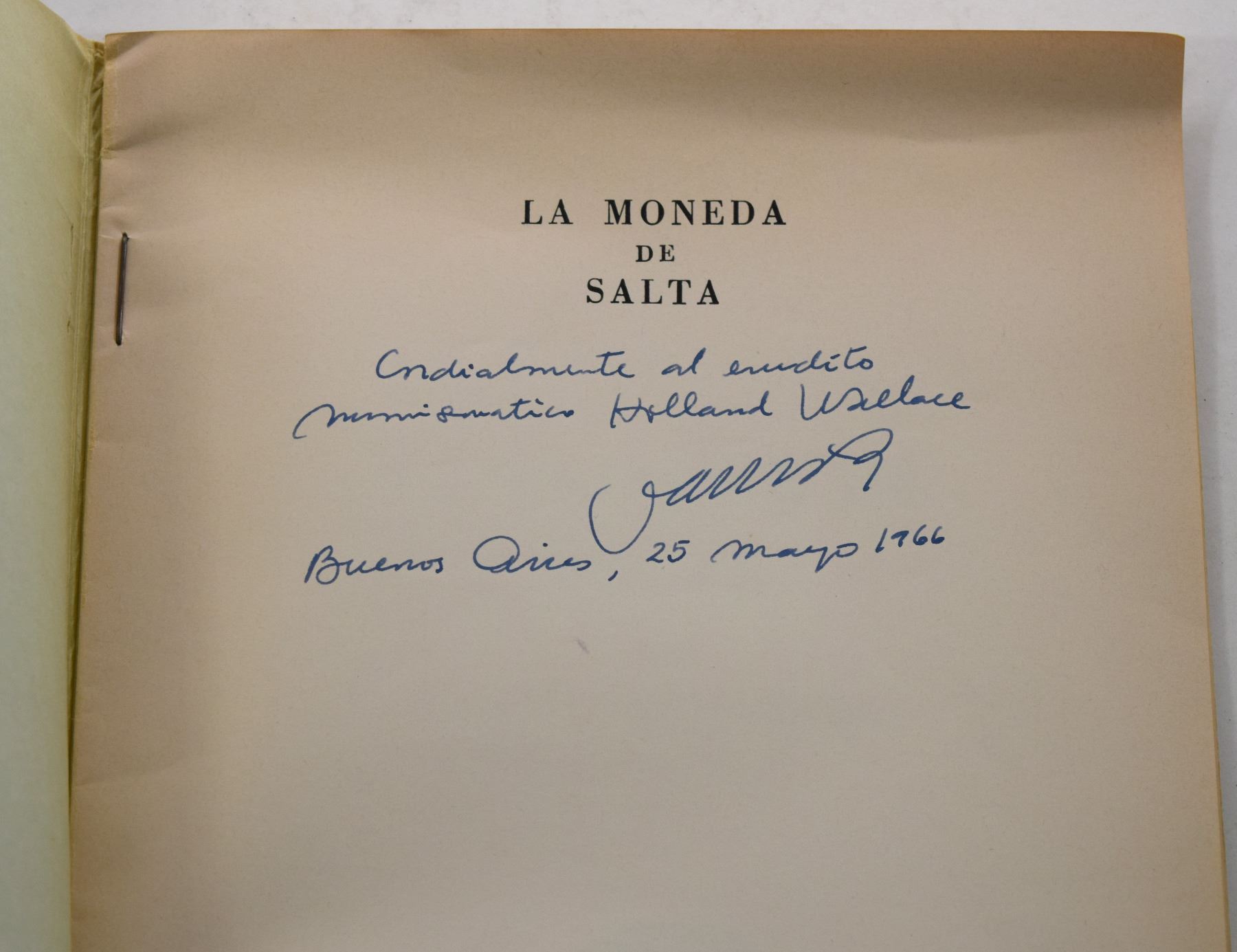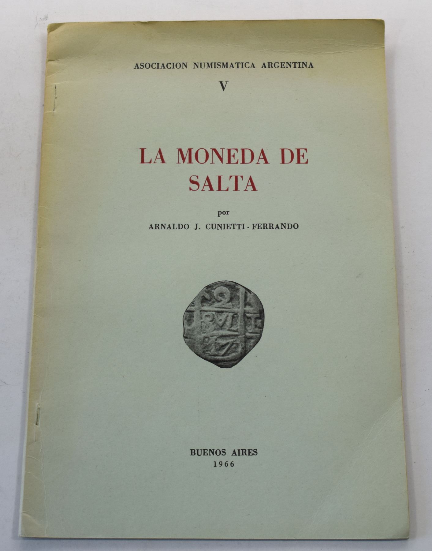 (8) La Moneda de Salta by Cunietti-Ferrando, Arnaldo J.; Asociacion Numismatica Argentina; 1966; 35p; 8vo; Softcover; illus.; Inscribed by the author; Asociacion Numismatica Argentina V.
