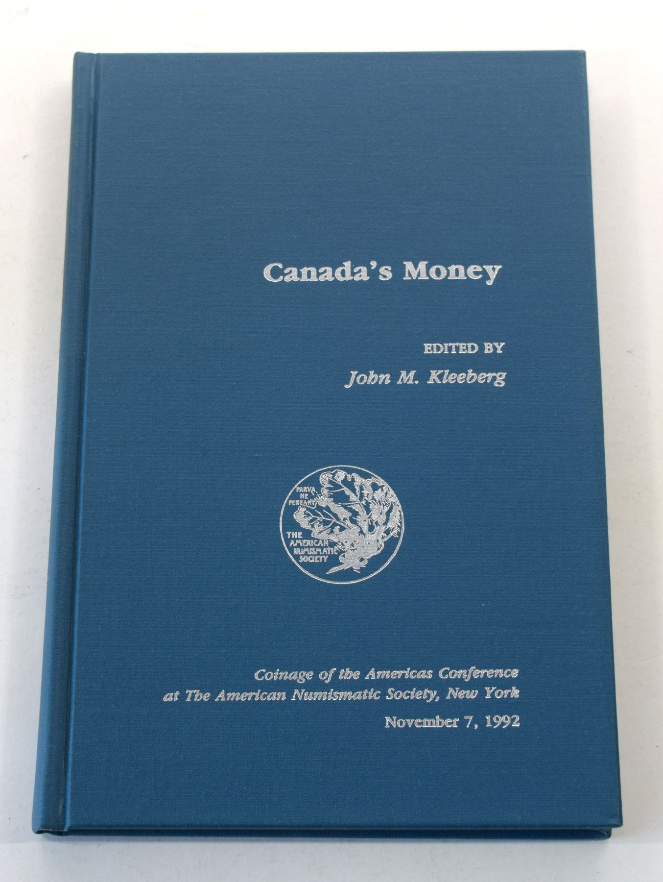 (2) Canada's Money edited by Kleeberg, John M.; The American Numismatic Society; 1994; 159p; 12mo; Hardcover; Blue buckram gilt; Coinage of the Americas Conference, Proceedings No. 8, November 7, 1992