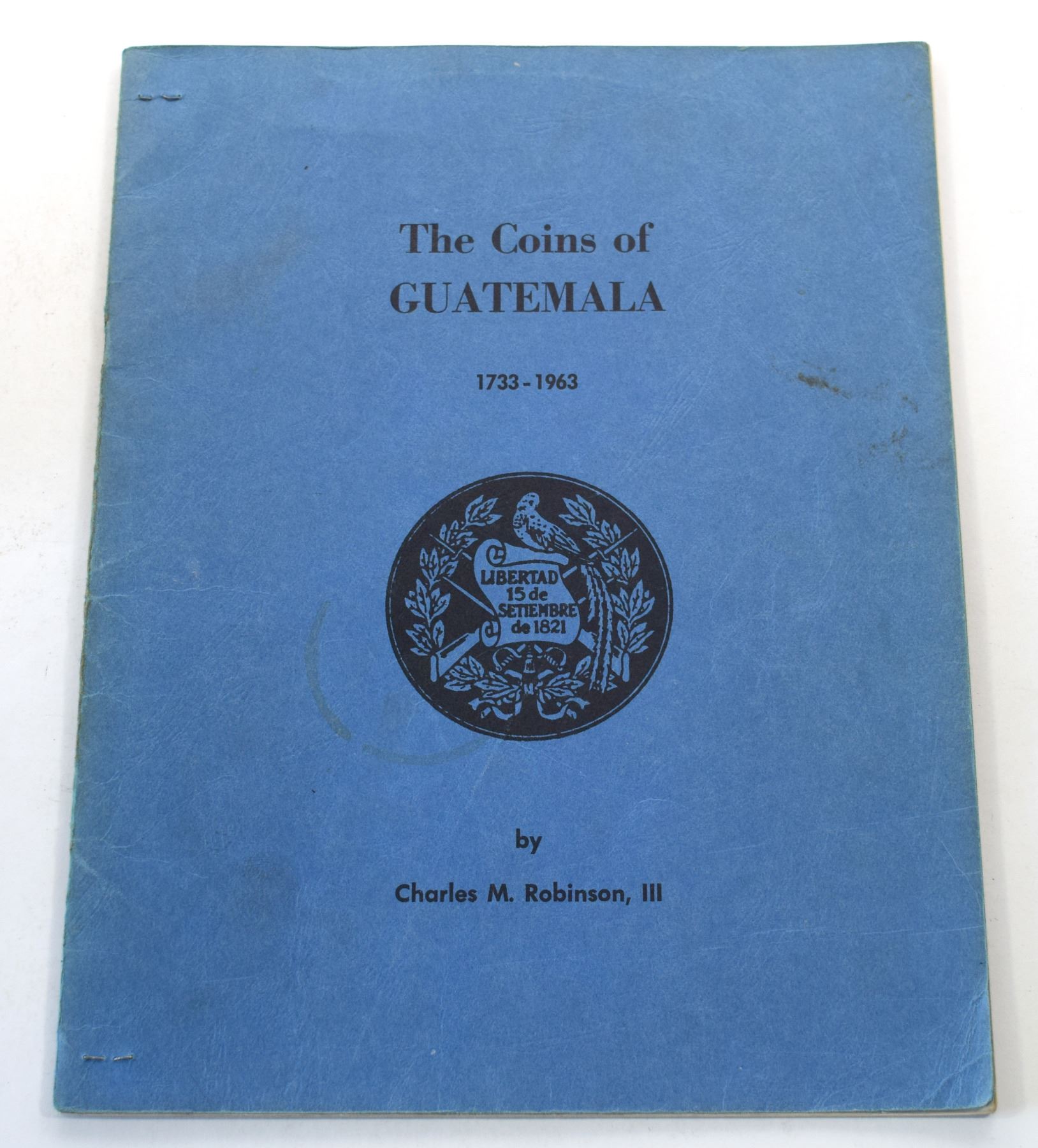 (7) The Coins of Guatemala 1733-1963 by Robinson, III, Charles M.; Charles M. Robinson, III; 1964; 31p; 4to; Softcover; Inscribed by the author. Subject: Coinage - Latin America