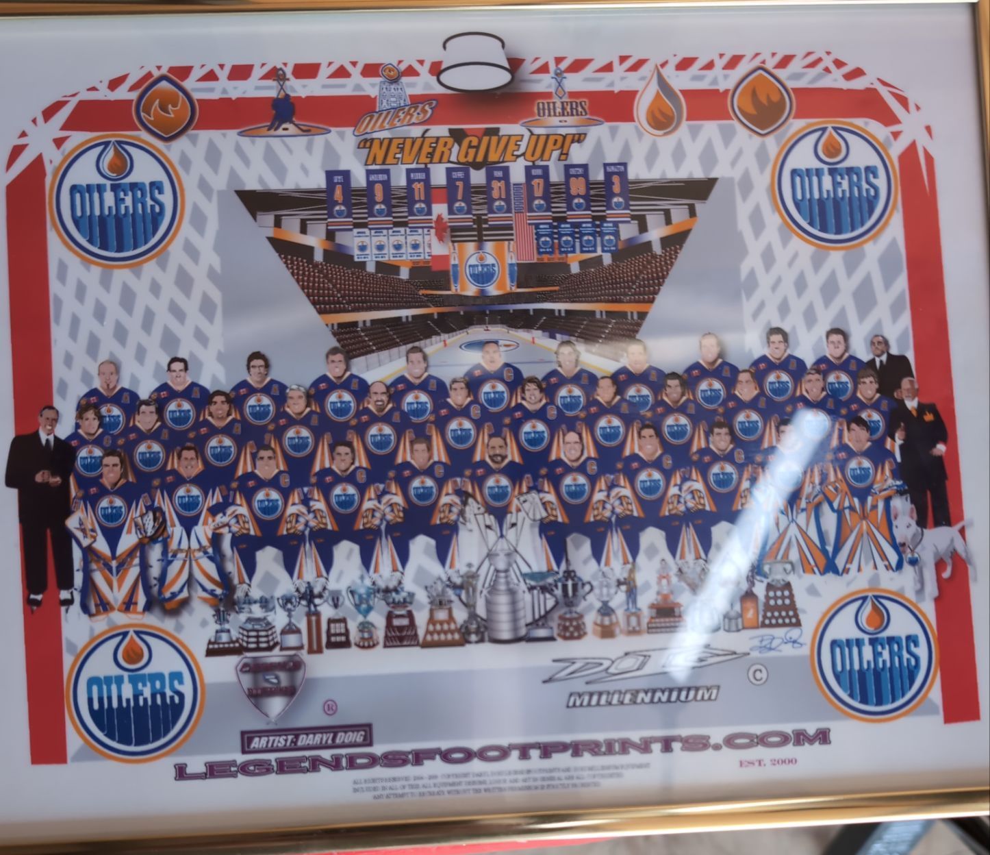 Multiple Gretzky Pics,Multiple Oilers Picture Frames, Never Give up Team Picture
