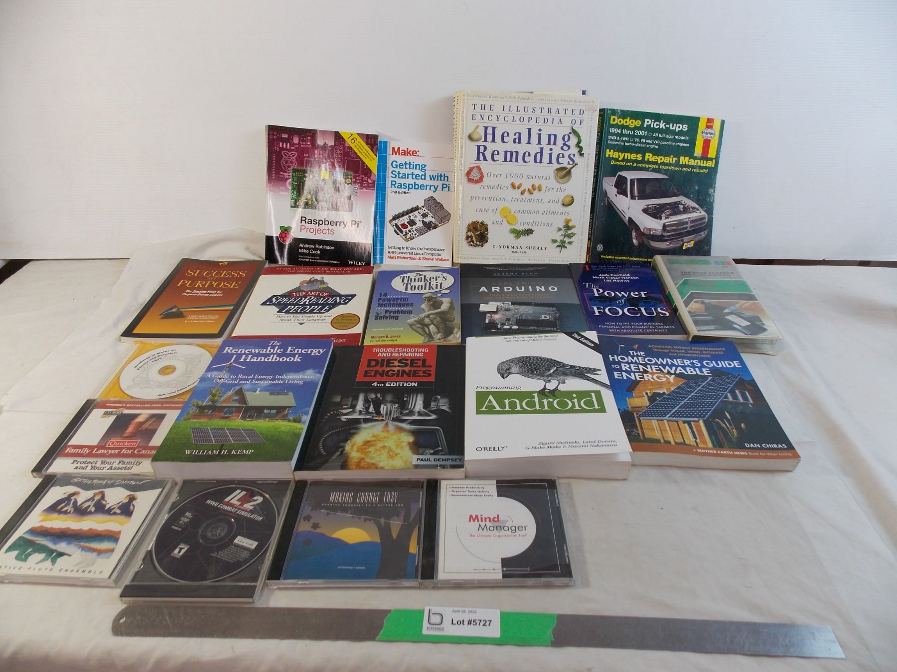Multiple learning books, Raspberry Pi coding, renewable energy, speed reading, diesel engines, heali