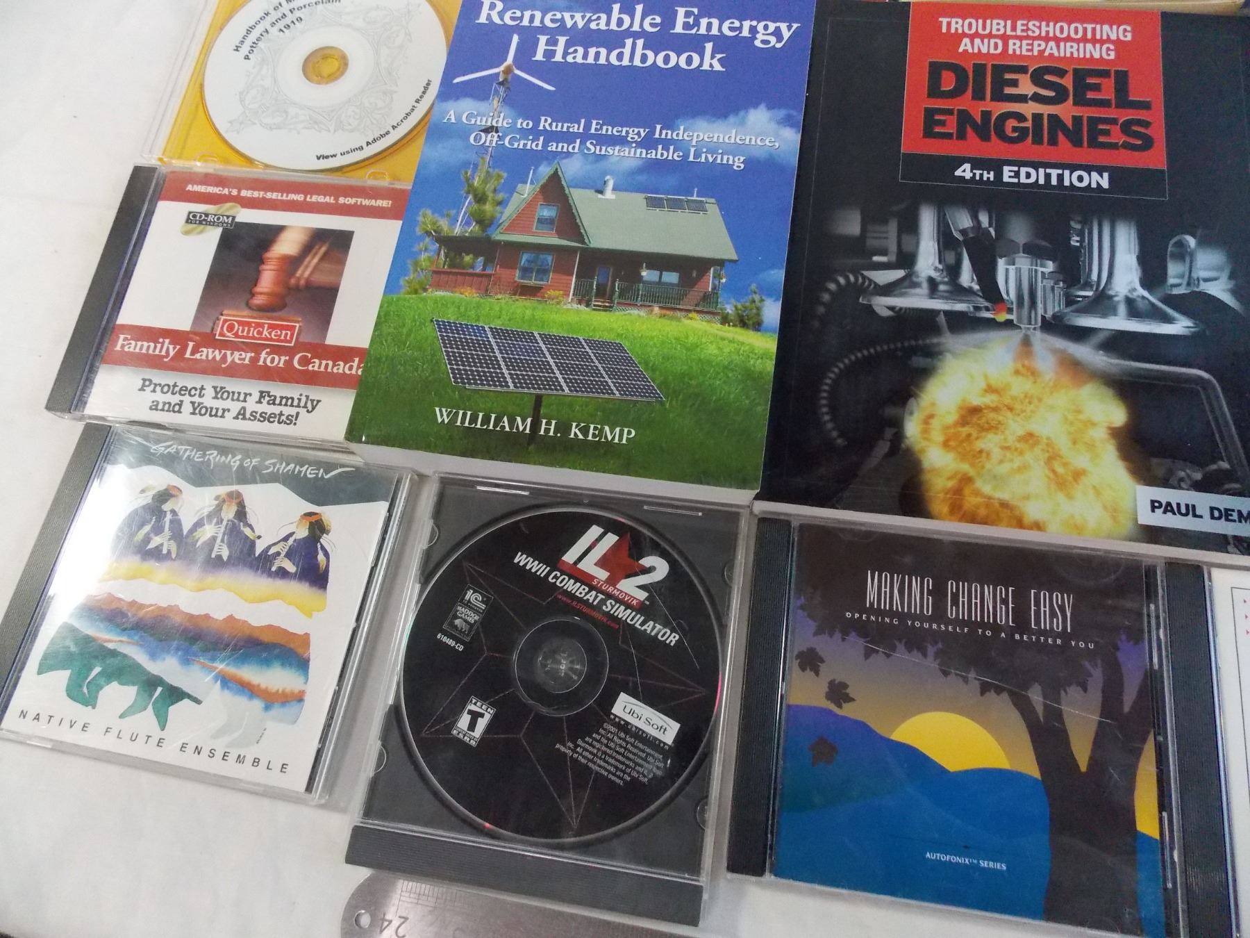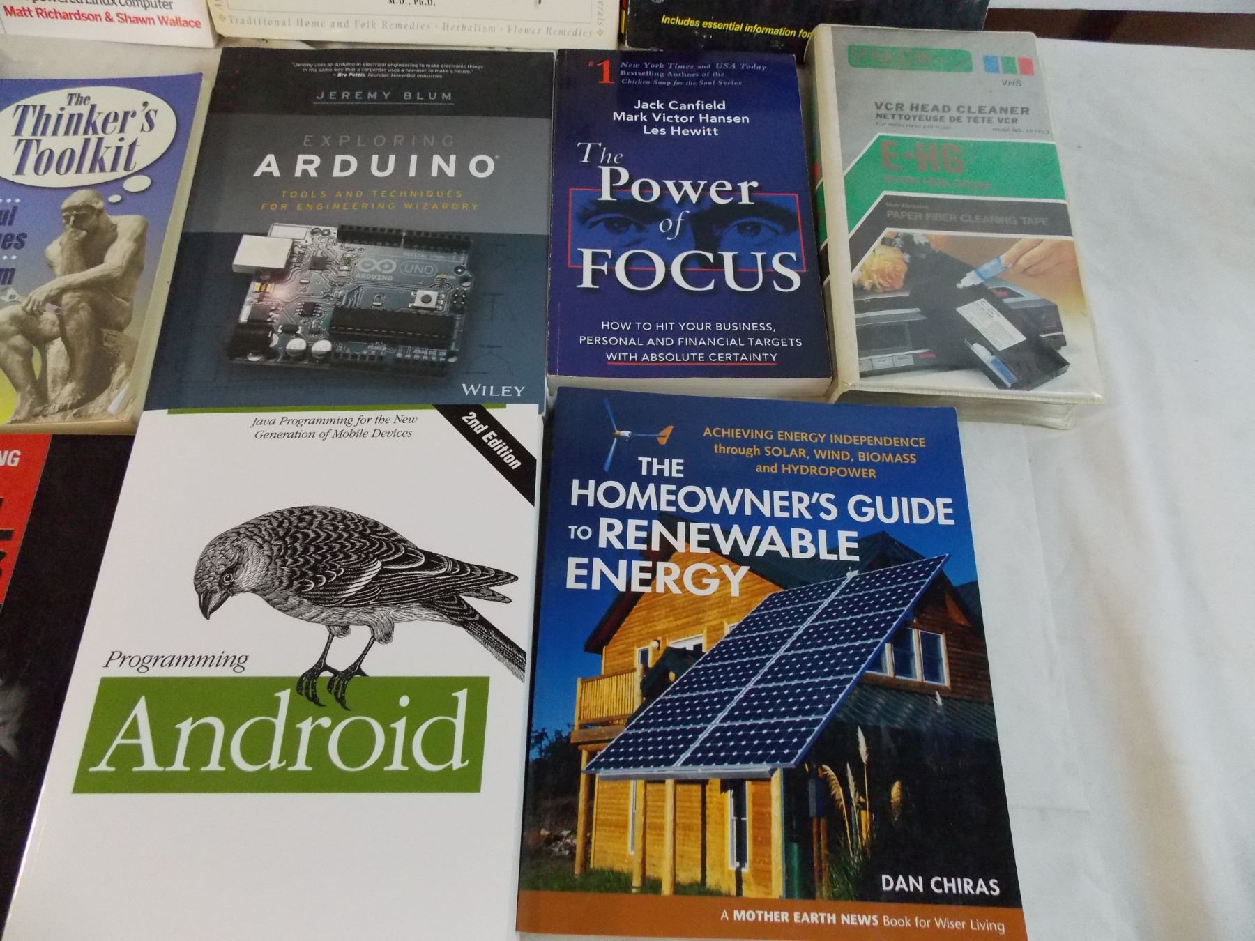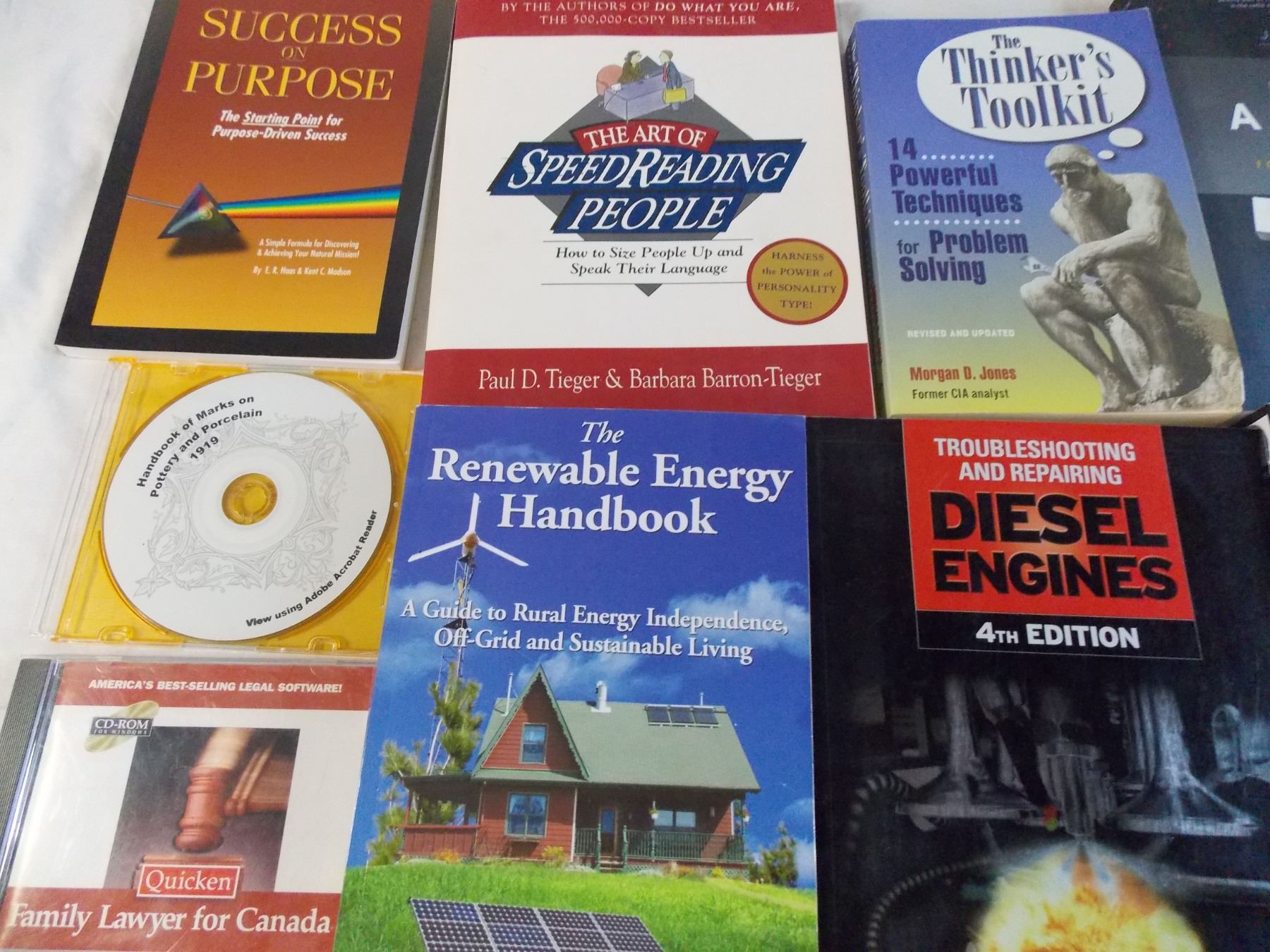 Multiple learning books, Raspberry Pi coding, renewable energy, speed reading, diesel engines, healing remedies, etc