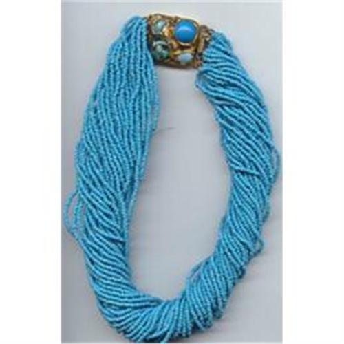 <tr><td>Title:Multistrand Turquoise Glass Bead Necklace</td></tr>