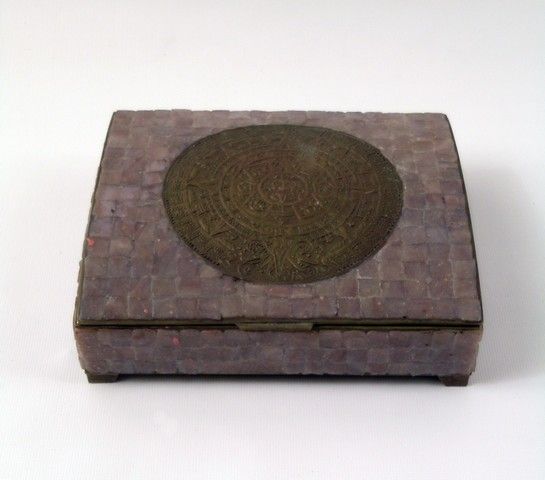 From the third in the Mummy series starring Brendan Fraser, "The Mummy: Tomb of the Dragon Emperor", (2008), this is a tiled metal box background prop. (Approx. 7" x 6").