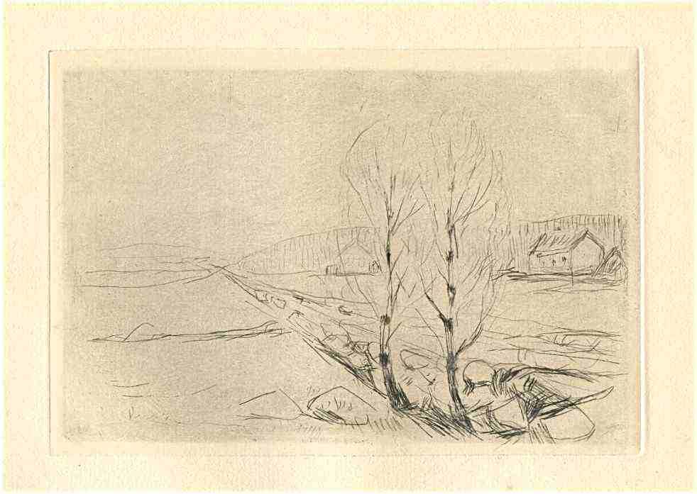 Munch "Early State" Original Etching And Drypoint. Catalogue Reference: Schiefler 268, First State Of Two. Also Described By Willoch In His Catalogue (Entry 139) As The Second State Of Three. This Difference Between The Two Catalogues Is Explained By The Fact That The True First State Exists Only As A Handful Of Working Proofs (Unknown To Schiefler And Virtually Unobtainable To Collectors); The Second State (Offered Here) Was Published In Berlin By Paul Cassirer In 1908. Munch Would Later Rework The Plate For The 1912 Edition, Adding Finishing Touches To The Tree Trunks, Rocks, Sky And Cottage Roof. Plate Size: 4 1/8 X 5 7/8 Inches (105 X 150mm) With Good Margins- Professionally Framed & Matted - Comes With Certificate - -