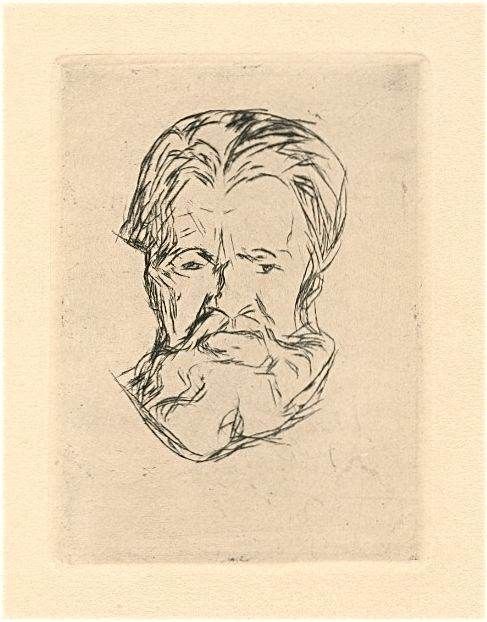 Munch "Portrait Study" Also Called "Head Of A Man" Medium: Original Etching. Catalogue Reference Schiefler 243. Published In Berlin In 1917 By Paul Cassirer. Plate Size: 4 5/8 X 3 3/8 Inches (115 X 84mm) - Professionally Framed & Matted - Comes With Certificate - -