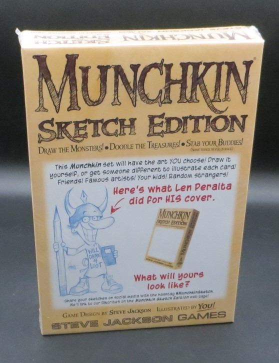 Munchkin: Sketch Edition is the same as the Munchkin base game, but all of the cards and the cover are art-free so that you can create your own munchkins and make the game look exactly like you want, depending on your artistic abilities, of course.