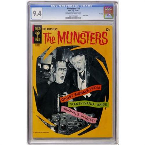 <B>Munsters #10 File Copy (Gold Key, 1966) CGC NM 9.4 Off-white pages.</B></I> Photo cover. Photo pin-up back cover. CGC notes, "From the Random House Archives." Overstreet 2007 NM- 9.2 value = $105. CGC census 10/07: 15 in 9.4, 3 higher.<BR><BR><b>Shipping:</b> Comics - Slabbed (certified) (<a target="_blank" href="http://www.heritageauctions.com/common/shipping.php">view shipping information</a>)