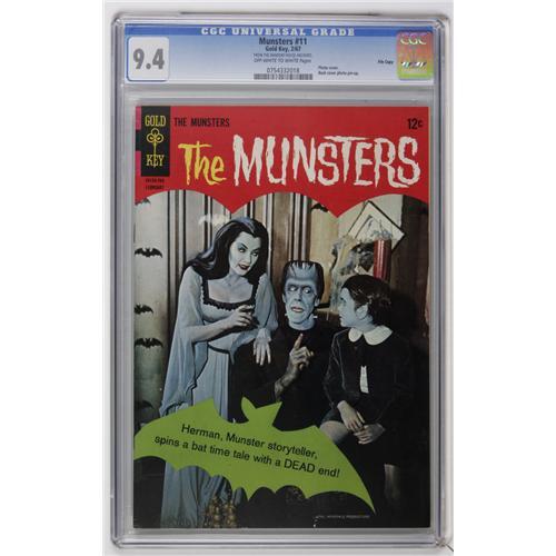 <B>Munsters #11 File Copy (Gold Key, 1967) CGC NM 9.4 Off-white to white pages.</B></I> Photo cover. Back cover photo pin-up. Overstreet 2006 NM- 9.2 value = $105. CGC census 3/07: 12 in 9.4, none higher. <I>From the Random House Archives.</B></I><BR><BR><b>Shipping:</b> Comics - Slabbed (certified) (<a target="_blank" href="http://www.heritageauctions.com/common/shipping.php">view shipping information</a>)