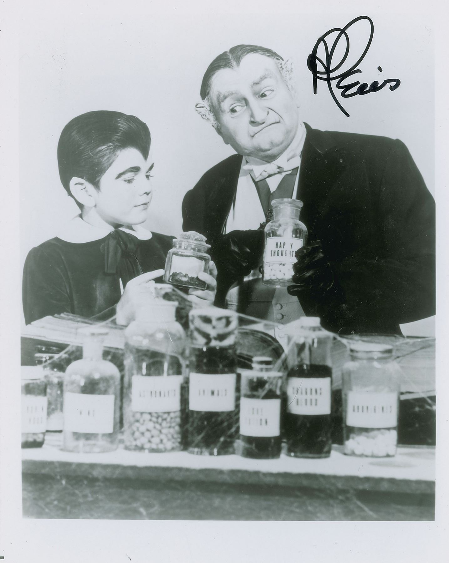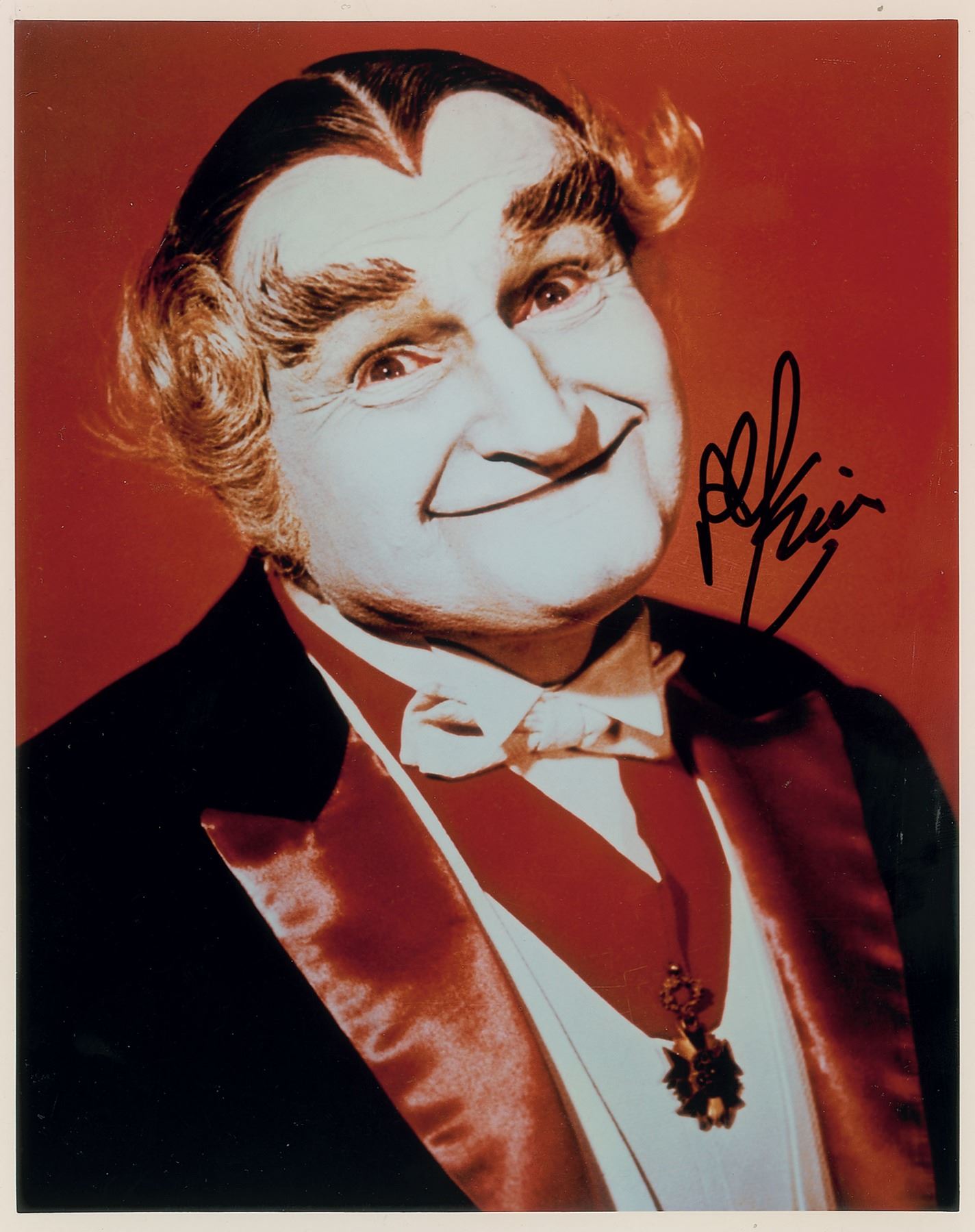 Group of four different glossy 8 x 10 photos of Lewis as Grandpa Munster in the classic television series The Munsters, each signed in black felt tip. In fine condition. Originally obtained by in-person specialist Mike Wehrmann.
