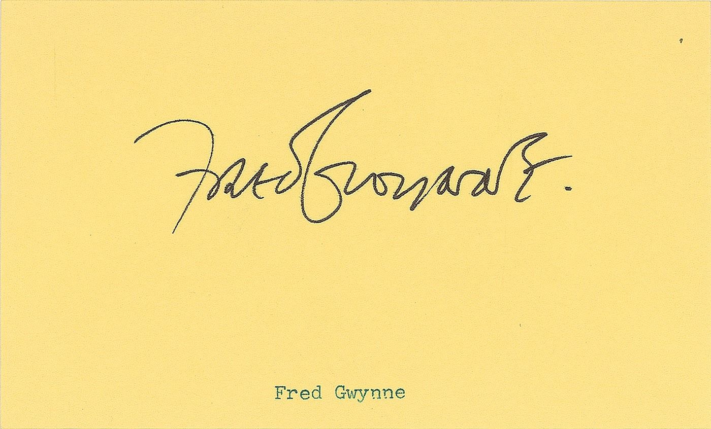 Bold ink signature, "Fred Gwynne,” on a yellow 5 x 3 card. In fine condition.