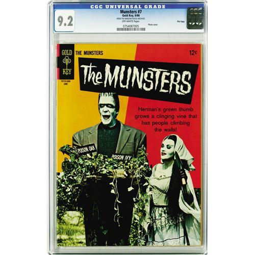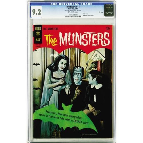 <B>Munsters Group (Gold Key, 1965-68).</B></I> Every issue included here is certified with off-white pages unless otherwise stated. Included here are <I>CGC 9.2</B></I> copies of #7 (CGC census 4/06: 5 in 9.2, 5 higher), #11 (2 in 9.2, 2 higher), #12 (3 in 9.2, 2 higher), #15 (11 in 9.2, 1 higher), and #16 (off-white to white pages; 3 in 9.2, 5 higher); <I>CGC 9.0</B></I> copies of #8 (off-white to white pages; 10 in 9.0, 5 higher), #13 (off-white to white pages; 1 in 9.0, 10 higher), and #14 (4 in 9.0, 17 higher); a <I>CGC 8.5</B></I> copy of #2 (1 in 8.5, 1 higher); a <I>CGC 8.0</B></I> copy of #3 (off-white to white pages; 6 in 8.0, 20 higher); and a <I>CGC 6.0</B></I> copy of #1 (off-white to white pages; 4 in 6.0, 14 higher). Approximate Overstreet value for group = $910. <I>From the Random House Archives.</B></I>