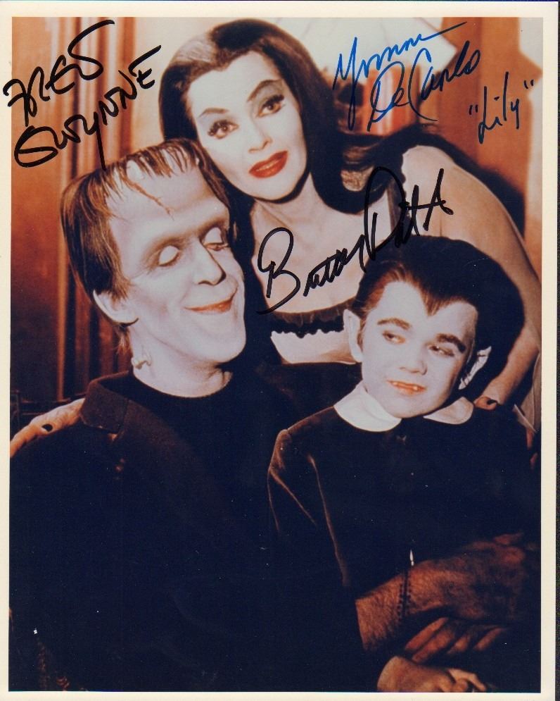 A vintage cast signed 8x10 by Fred Gwynne Butch Patrick and Yvonne DeCarlo with COA