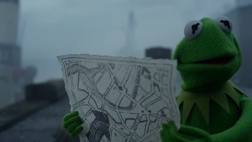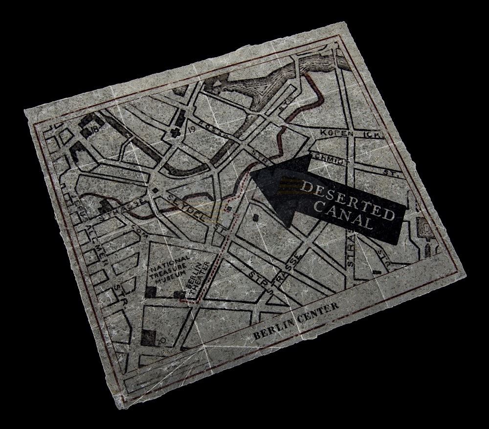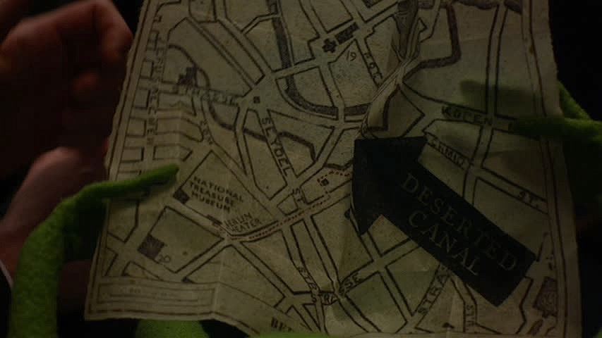 (Walt Disney Pictures, 2014) This prop map was custom-made by the production for use by Kermit the Frog. The map of Berlin Center features the direction to a deserted canal from the Berlin Theater. The map is distressed for filming and measures 10.5" x 9".