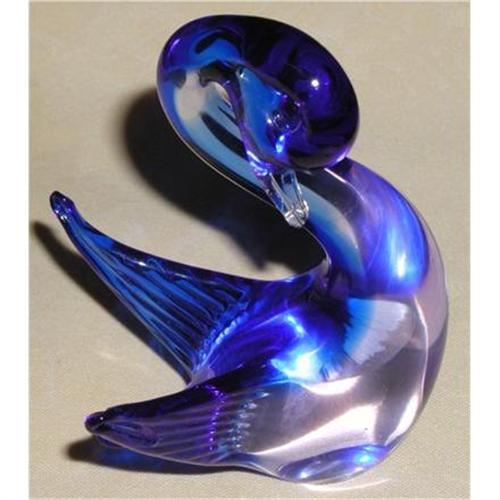 AN AUTHENTIC MURANO GLASS SWAN,A VERY BEAUTIFUL, DARK BLUE FADING INTO CLEAR. THE ORIGINAL MURANO LABEL IS STILL PRESENT.