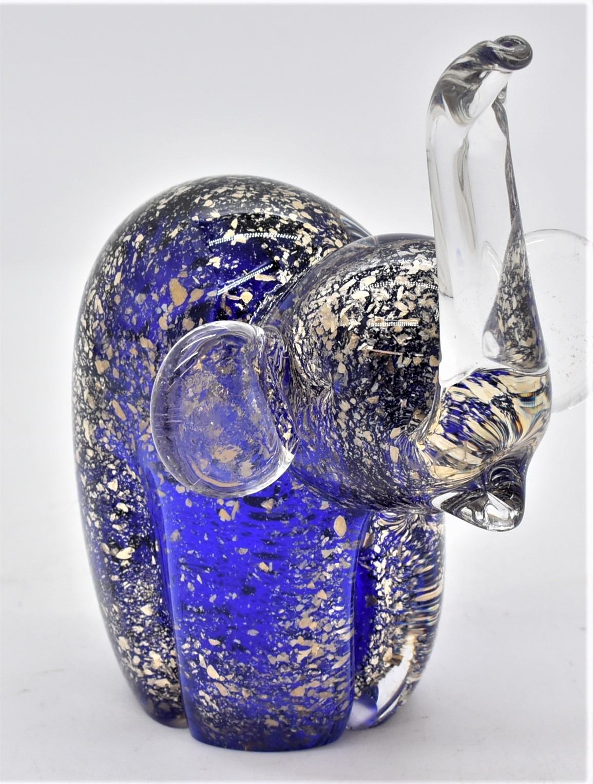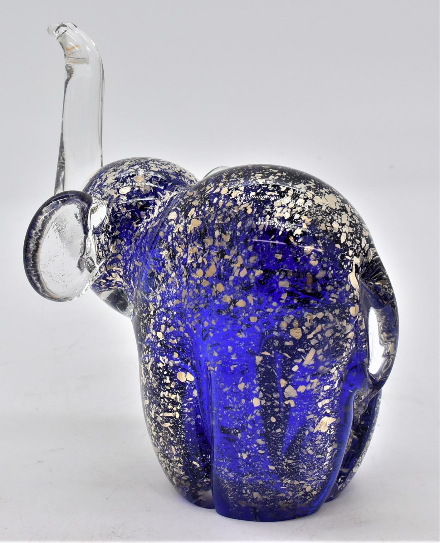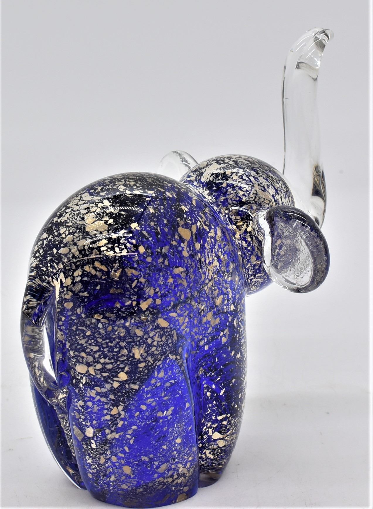 Murano Cobalt Blue & Gold Flake Glass Elephant Paperweight, measures 5.5'' x 6'', polished pontil