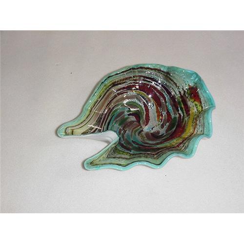 Murano glass dish 9 x 7". Well colored. In the shape of a pearl oyster.