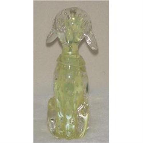 A Murano glass dog, 7 1/4" tall, clear glass with a beautiful vaseline center and elongated bubbles throughout. Hand blown, a cute puppy to add to your collection. Condition is excellent. (7)