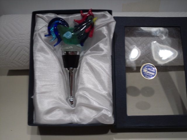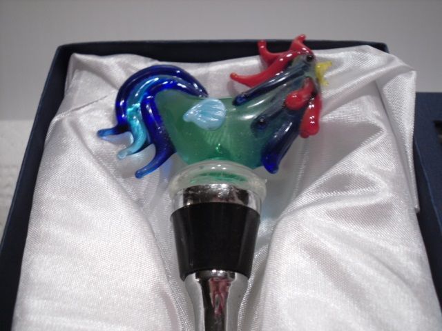 This is a very colorful rooster. This wine stopper is from the Cristalleria Ann Primrose Murano Collection d'arte. Comes in original box.