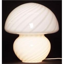 Murano Glass table lamp, mushroom-shaped form of hand-blown swirled white glass, signed with Vetri Murano decal, 13”dia. x 15”h, excellent condition