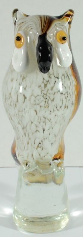 Hand blown art glass, exotic owl, 9" Tall. Est. $35-$40