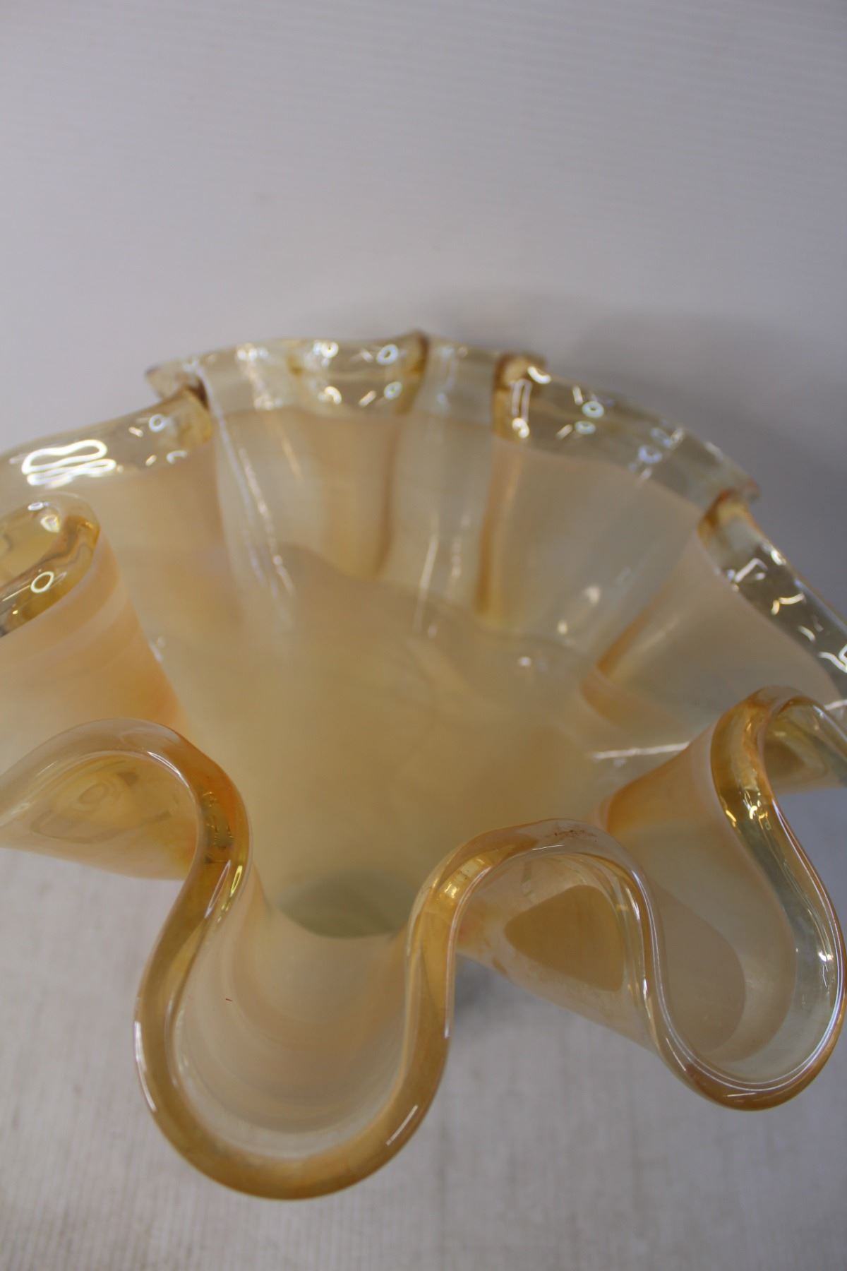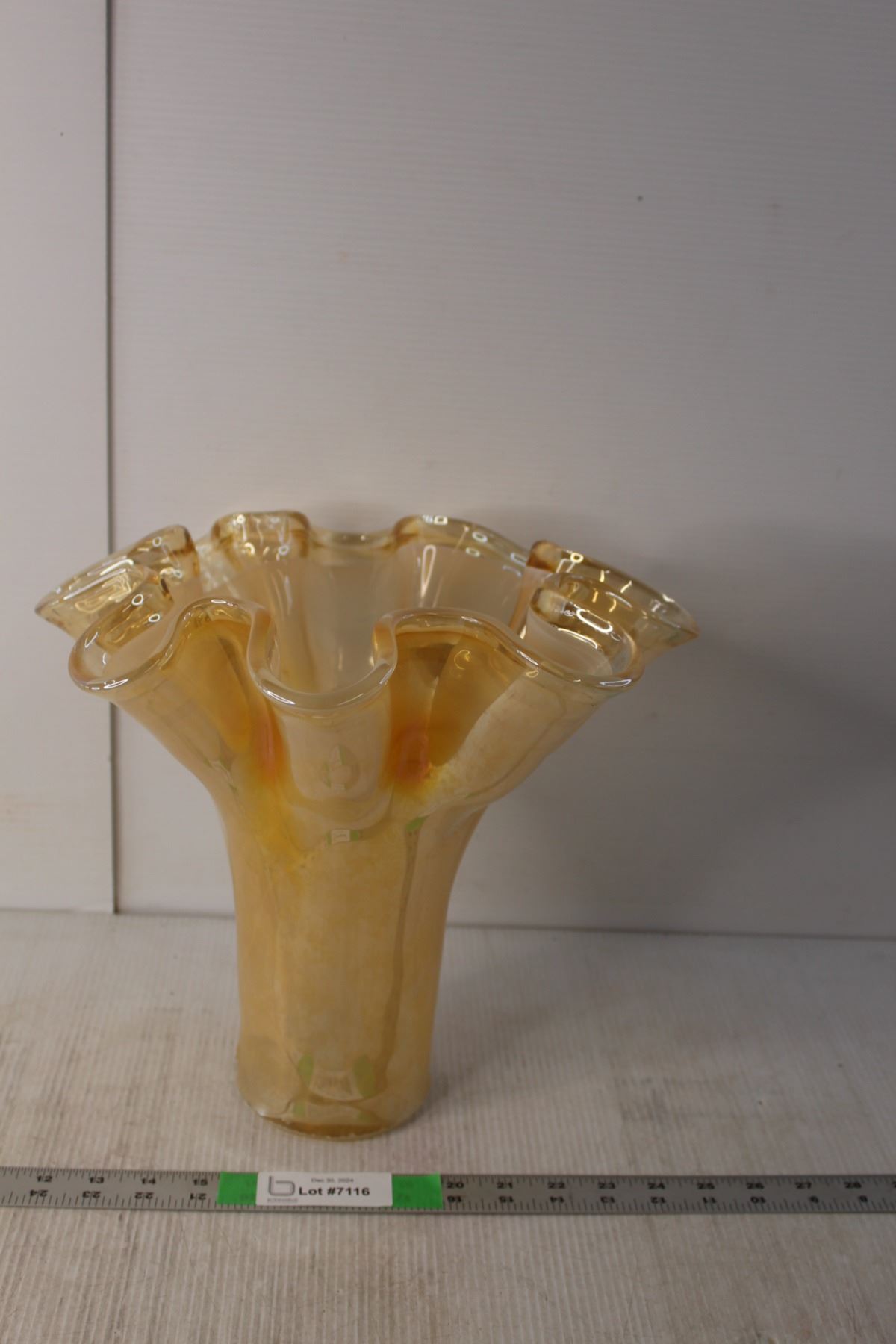 Murano Style Ruffled Orange Glass Vase 12" Tall