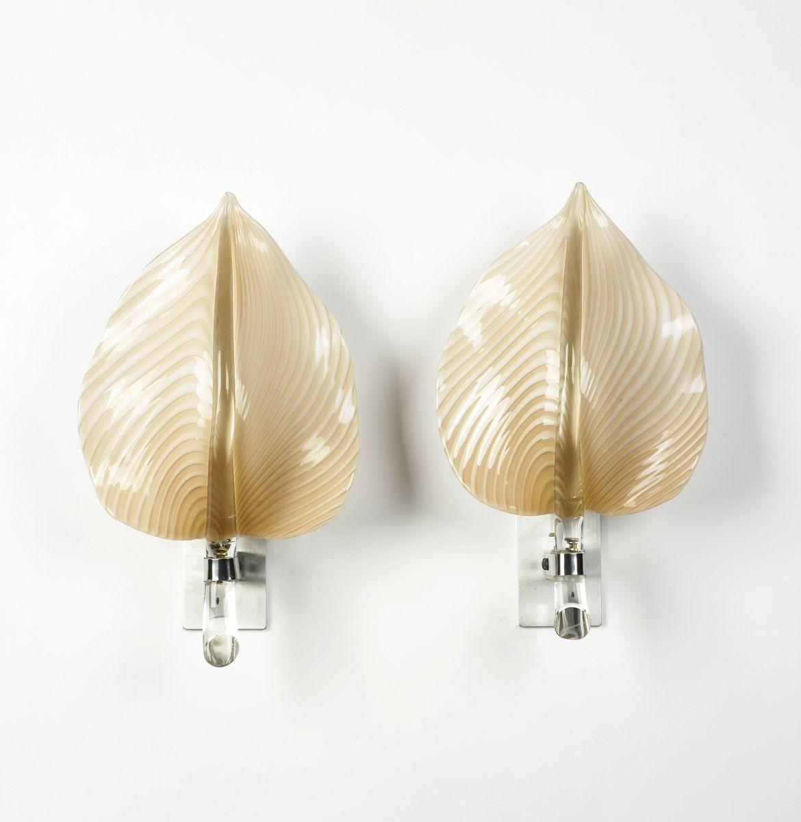 Murano leaf sconces, pair