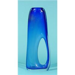 Murano vase / bottle, blue, openwork handle, h. 38 cm.